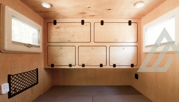 Dzięki zagospodarowaniu każdej przestrzeni możesz spakować cały bagaż nawet na dłuższą wyprawę. Masz do dyspozycji skrzynię przednią na meble i różnego rodzaju akcesoria kempingowe lub narzędzia, liny, łopaty; pojemne, podświetlane szafki wewnątrz kabiny na ubrania oraz siatki na większe i mniejsze drobiazgi a w podłodze dodatkowo uchwyty dla zabezpieczenia przewożonego podczas jazdy większego bagażu.